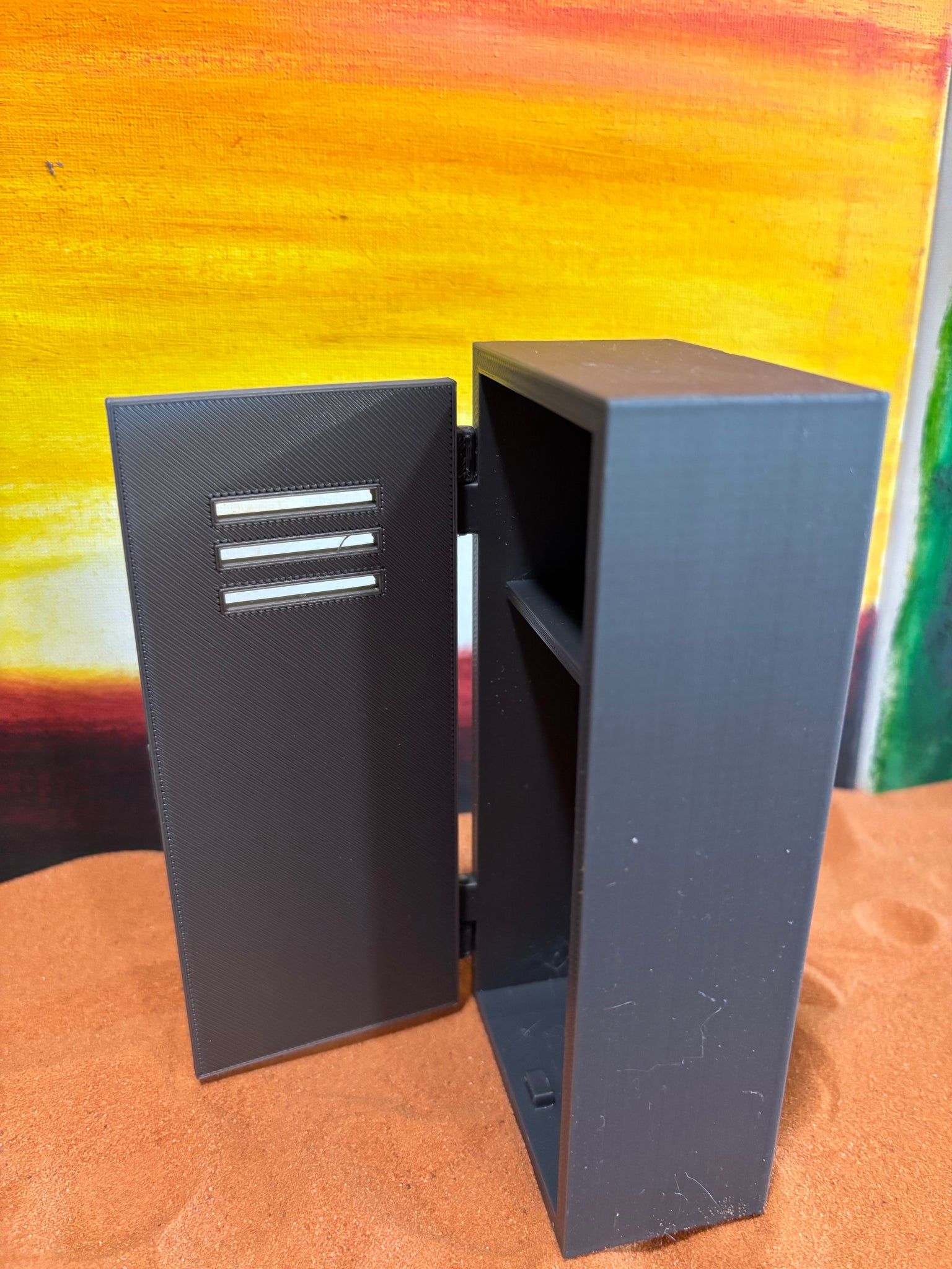 6” tall heavy duty locker with door opens/closes. 3-D printed Quality image.