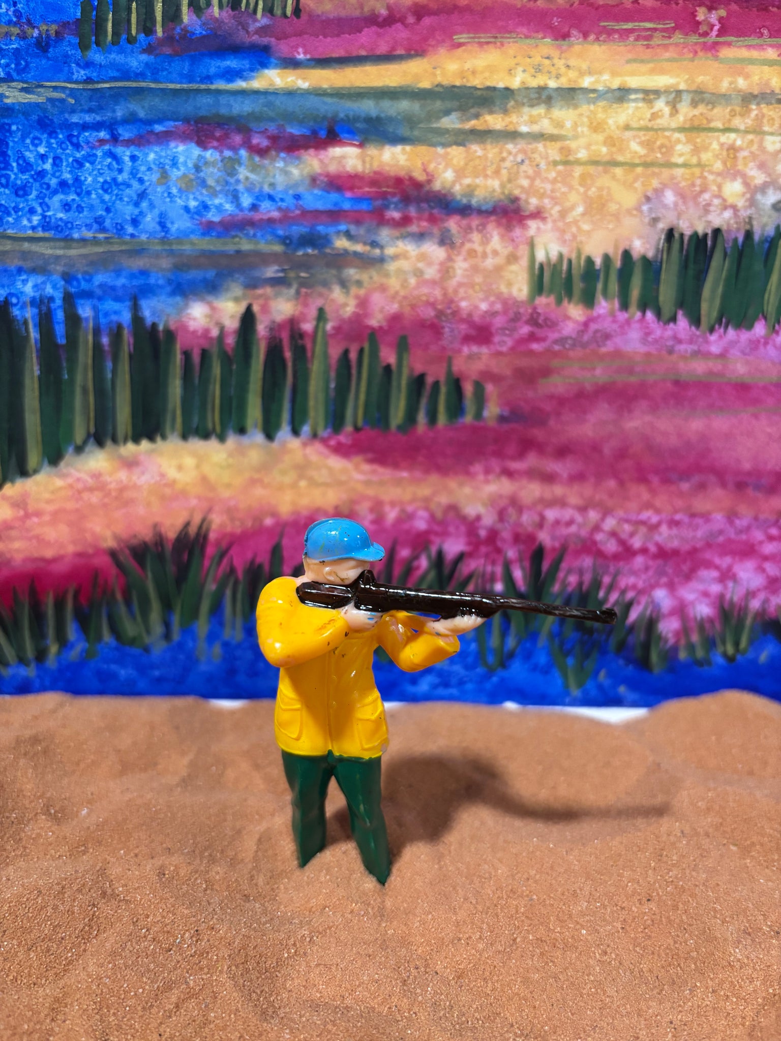 Made by Wilton, hard to find & collectible miniature of a hunter aiming a rifle. 3”